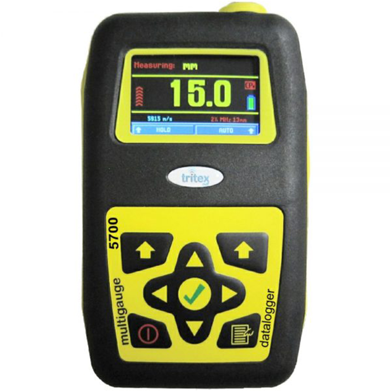 The Multigauge 5700 is a simple, robust ultrasonic thickness gauge designed for most common thickness gauging applications with the added benefit of being able to store measurements within the gauge. The easy to use keypad allows operator interface whilst the bright LCD display can be used in all light conditions. The moulded soft rubber surround feels comfortable, looks good and provides extra protection against knocks and scrapes. All probes have Intelligent Probe Recognition (IPR), which automatically adjusts settings in the gauge at the same time as transmitting recognition data – the result is a perfectly matched probe and gauge for enhanced performance. Additionally, the Automatic Measurement Verification System (AMVS) ensures only true measurements are displayed, even on the most heavily corroded metals. The gauge can store measurements in either a grid or string format which can then later be used in other proprietary programs.